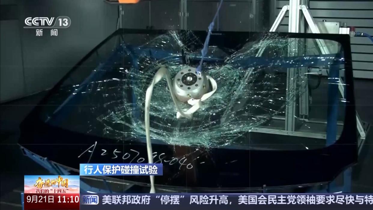 总台记者 魏明:实验室正在进行的前挡风玻璃行人保护碰撞测试,用模拟成人头部的装置,搭配激光测速仪、高速摄像机等设备,全程记录撞击过程。