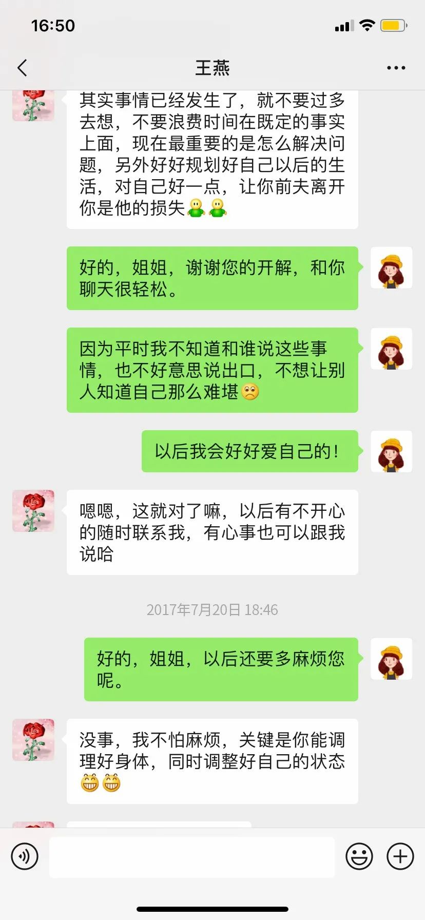 我怎么也没想到,我的婚姻会毁在自己身上。为了逃避,我极少出门,把自己关在家中,家人和朋友的微信和电话也都不管,最后直接选择了关机。她说男人从不会因为你生了个儿子对你感恩戴德,却会为了难忘的鱼水之欢把你捧在手心里,古往今来无一例外!临走前,她介绍一个叫王燕的朋友给我,说她是专门针对女性私处调理和保养的健康达人,在宝妈圈子里也特别火,她就是通过王燕的帮助和调理,现在私处紧致水润,和老公性福无比。 刚开始我是不相信的,毕竟我去过这么多大型,正规的医院,连医院都没能解决我的问题,但我相信闺蜜,她肯定不会骗我,出于好奇我添加了王燕的微信,没有直接跟她聊,而是先浏览了她的朋友圈。她的朋友圈是一些关于女人身体调理和保养的,每天都会分享一些健康小知识和促进夫妻感情生活的小技巧,帮助女性朋友去更好的爱护自己。她很郑重的提示广大女性,妇科炎症如果不及时治疗,可能会导致炎症在各生理部位相互蔓延和交叉感染外,还会带来许多并发症,甚至导致某些部位有癌变。最让我激动的是,居然看到了很多和我类似情况的案例。我也从怀疑到慢慢的相信,期间我多次问过闺蜜是否真的那么神奇,她说自己肯定是用的好了才给我推荐,所以我继续关注,持续了大概半年时间我决定主动跟她聊一聊,刚开始我无从下手,不知道怎么开口说这些私密的话题,没想到王燕老师为人非常温和,像个大姐姐一样跟我聊天,说关心我的话,一下子拉近了我们的距离。
