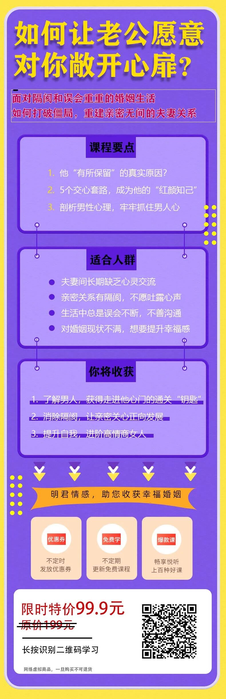 如果你也渴望读懂对方,渴望在亲密关系中,让他对你敞开心扉,却又常常求而不得,那么这一课程就能帮助到你。
