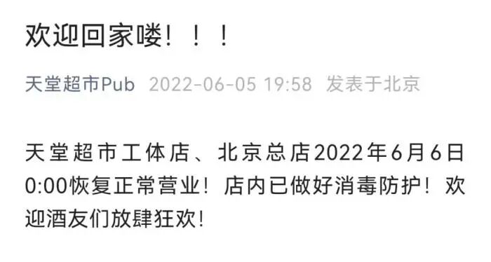 6月6日晚上9:16分,顺义2名核酸阳性人员就曾到访天堂超市酒吧,玩到凌晨后意犹未尽,又到隔壁的酒吧onethird继续嗨……