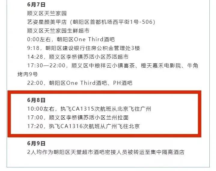 更让人惊掉下巴的是,“感染者1991”自述:5月26日至6月8日期间,我一直未做核酸检测,期间“曾多次前往餐厅、酒吧、单位等聚集性场所”。在6月8日晚已出现发热等新冠典型症状后,仍于6月9日凌晨再次前往天堂超市酒吧,真是生命不息,狂嗨不止!